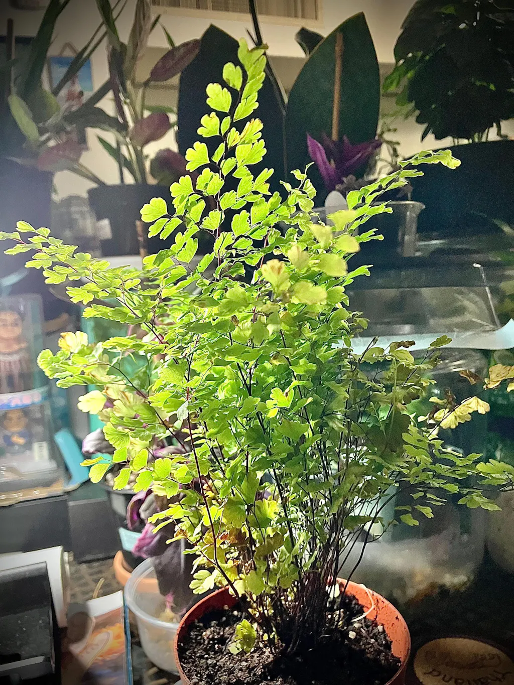 Southern Maidenhair Fern 🌿 has soft fan-shaped leaflets and airy black stems that give it a light, elegant look plant lovers really notice. It does best indoors in bright indirect light with steady moisture and higher humidity, so it’s happiest in bathrooms, kitchens, or other spots away from hot sun and dry vents. This fern is beautiful but less forgiving than tougher houseplants, especially if it dries out too much. Pro tip: keep the soil evenly moist and the air a little humid 💧—crispy leaf edges usually mean it got too dry too fast.